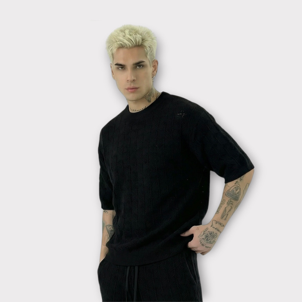 Μπλούζα Με Γεωμετρικά Νημάτινη Μαύρη