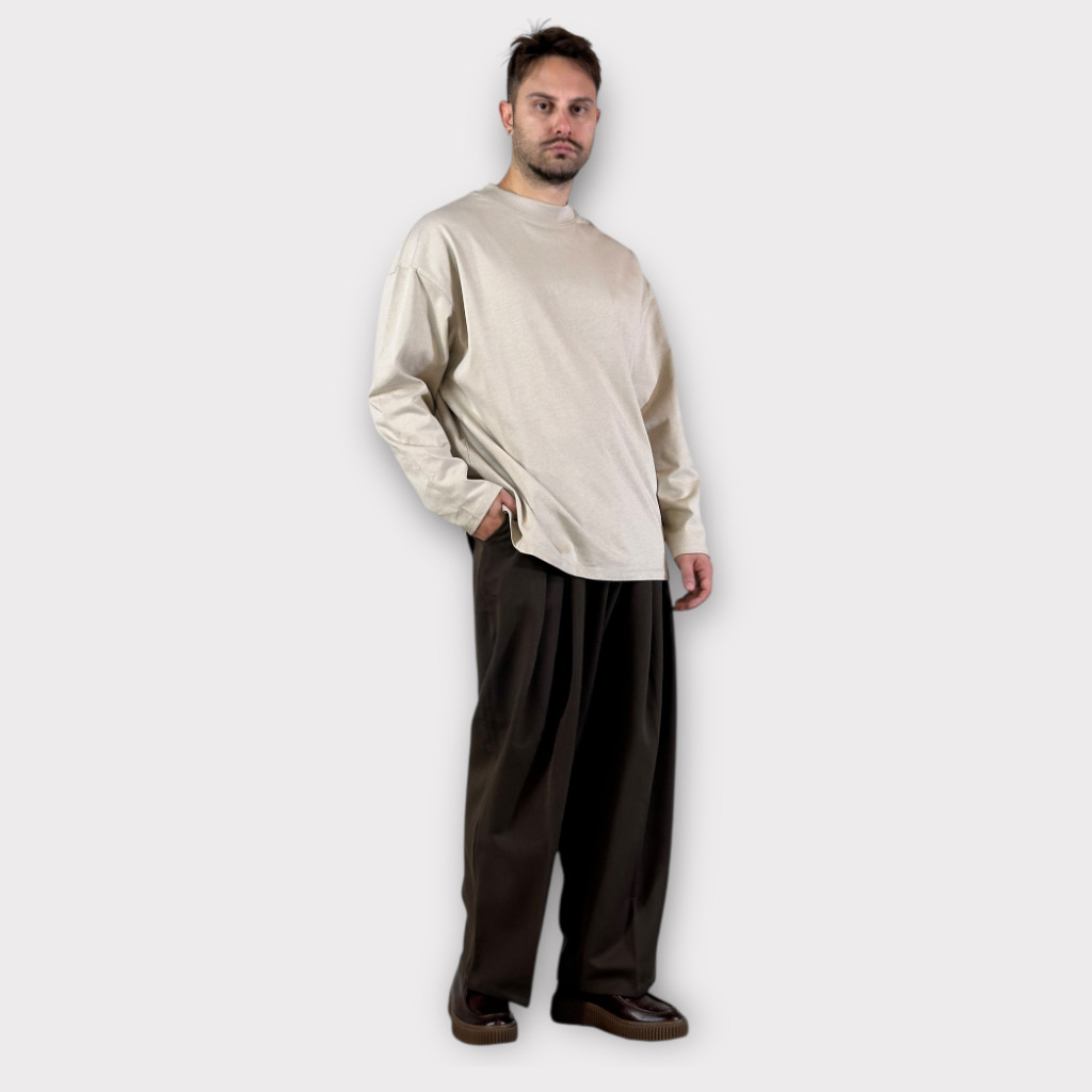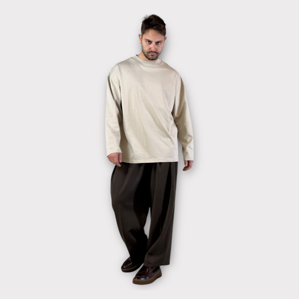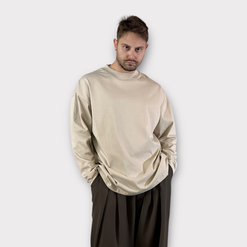 Μπούζα Oversized από βαμβακερό ύφασμα. Στρόγγυλη λαιμόκοψη και μακρύ μανίκι
