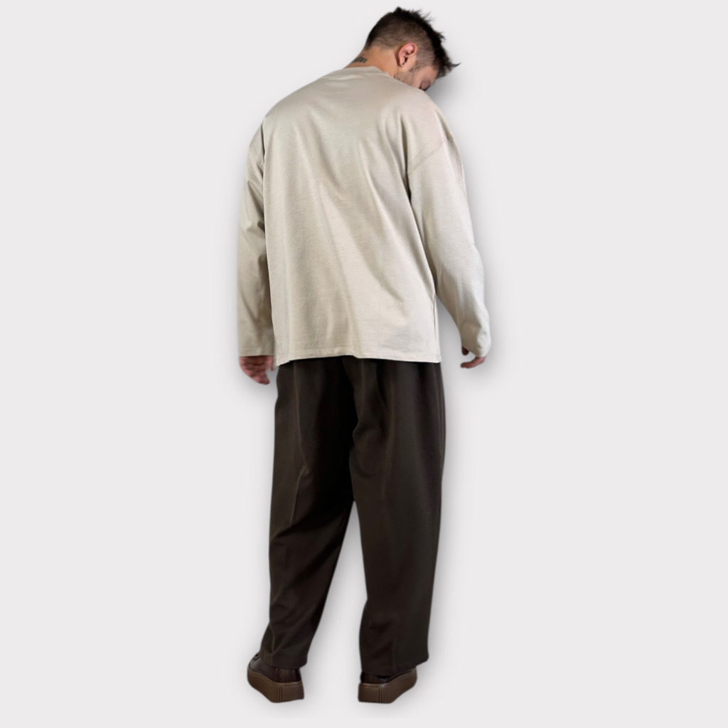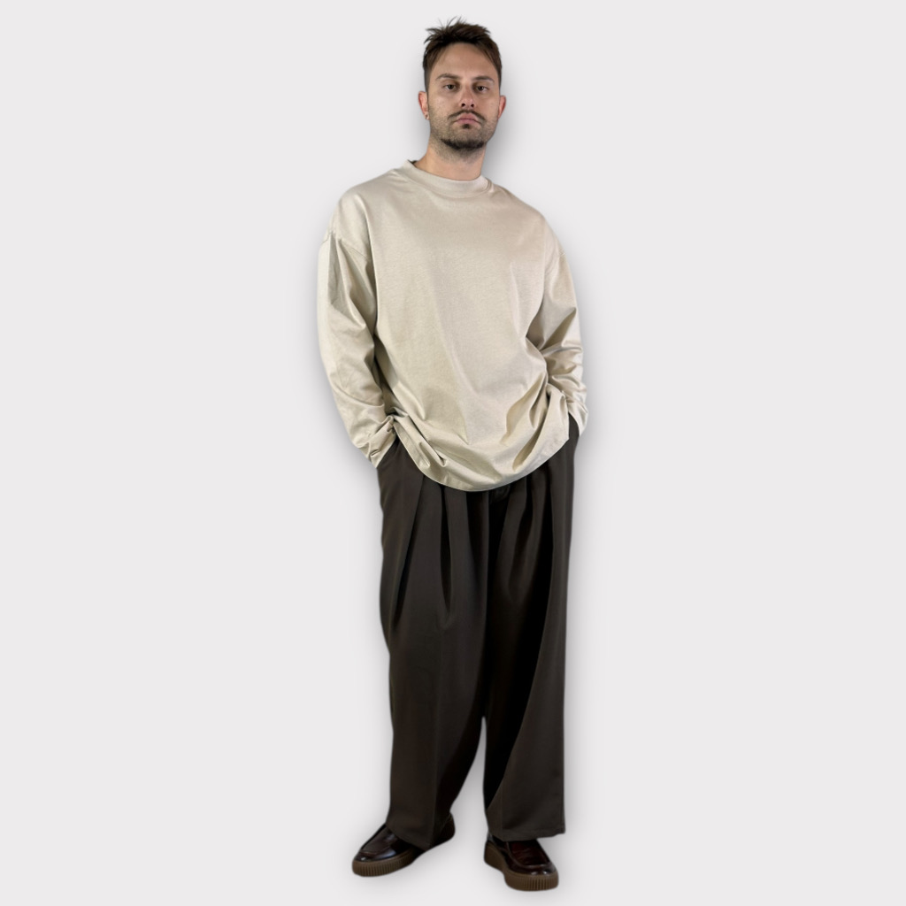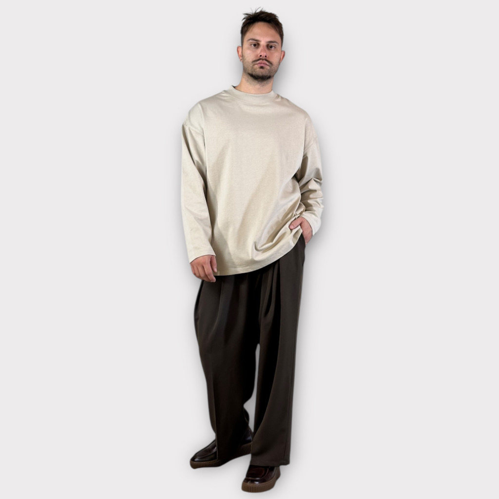 Μπούζα Oversized από βαμβακερό ύφασμα. Στρόγγυλη λαιμόκοψη και μακρύ μανίκι