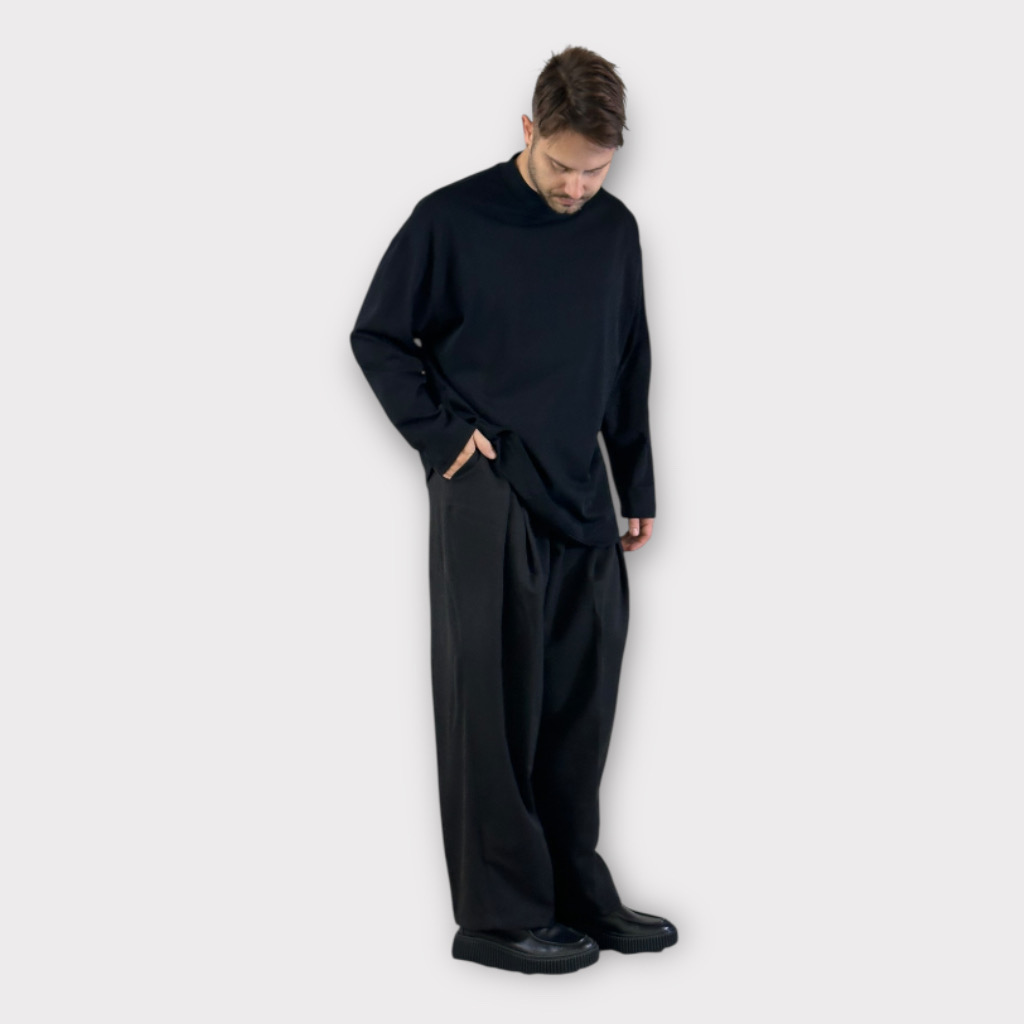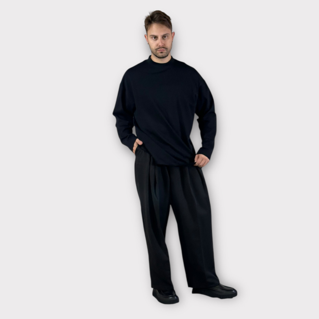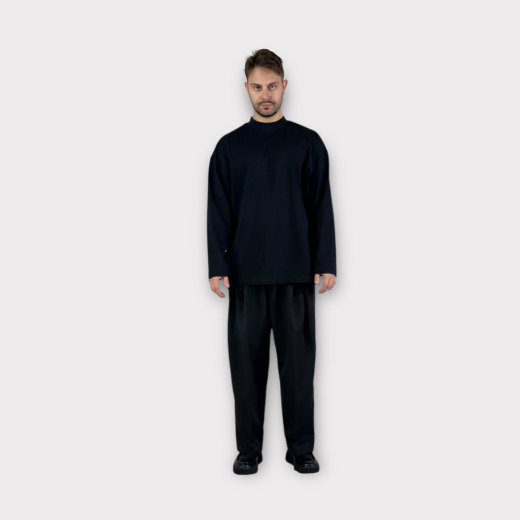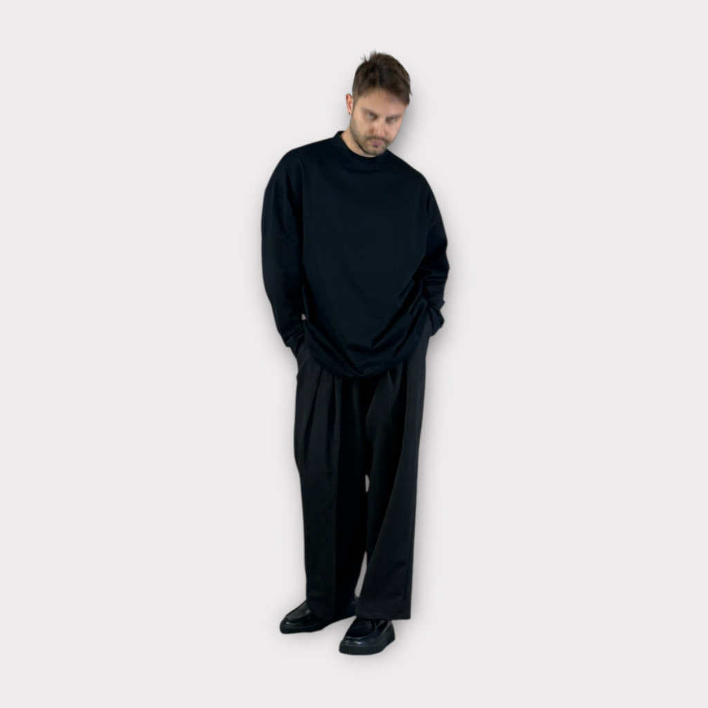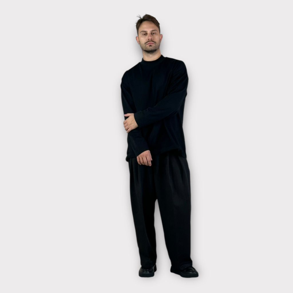 Μπούζα Oversized από βαμβακερό ύφασμα. Στρόγγυλη λαιμόκοψη και μακρύ μανίκι