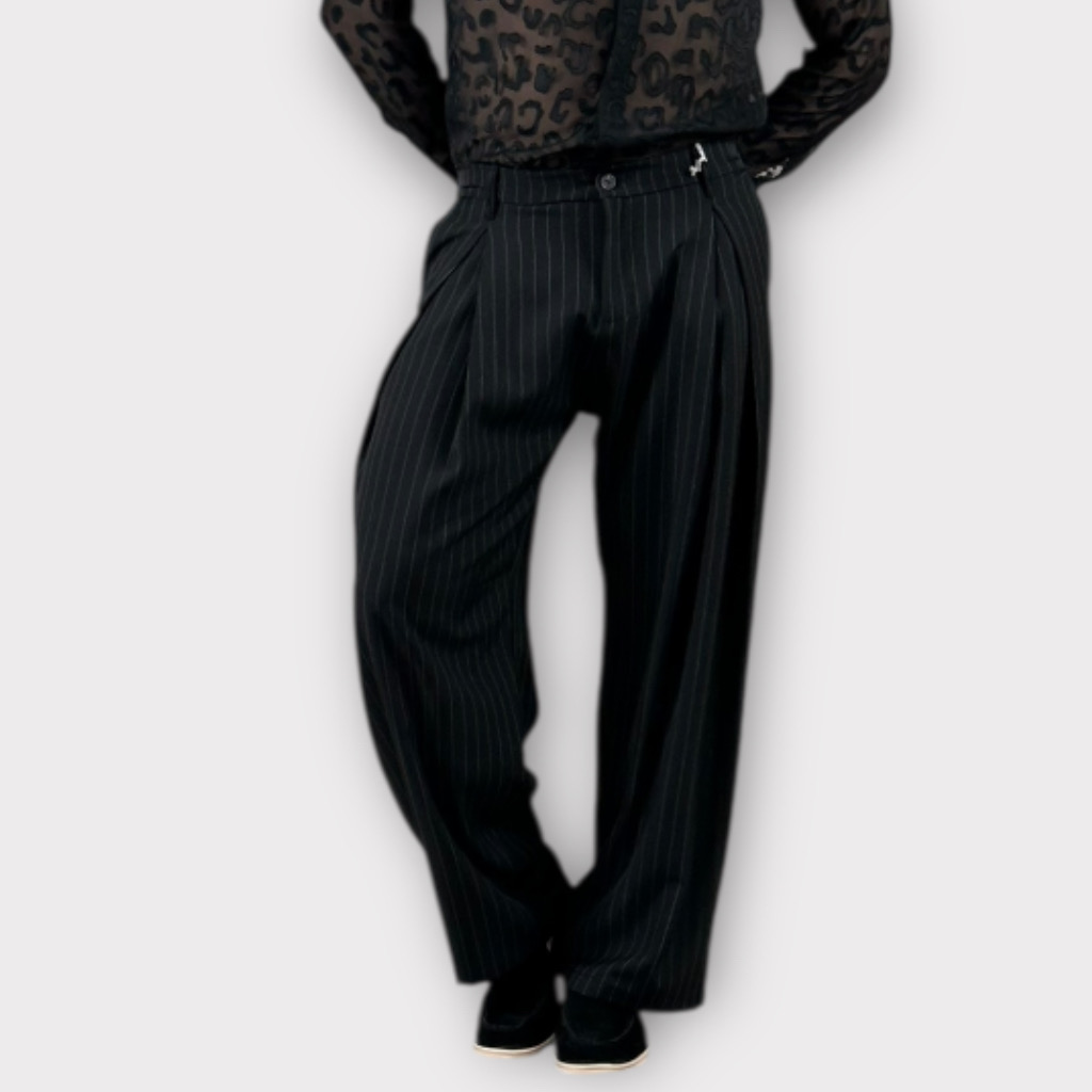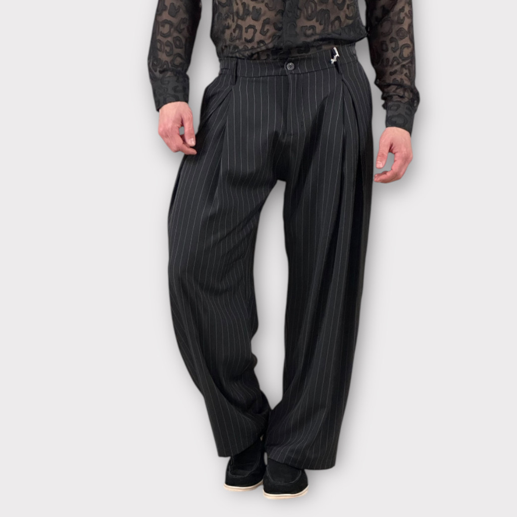 Παντελόνι Μαύρο Ριγέ Με Πιετά