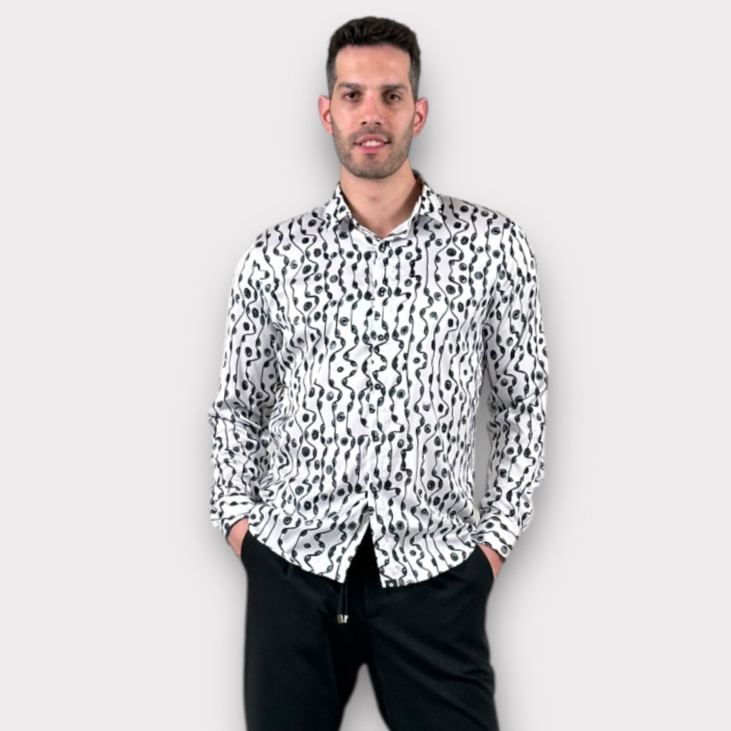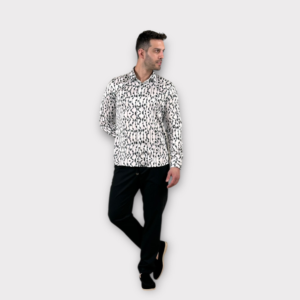 Πουκάμισο regular fit. Ιταλικός γιακάς και μακρύ μανίκι που καταλήγει σε μανσέτα με κουμπί. Κλείσιμο μπροστά με κουμπιά.
