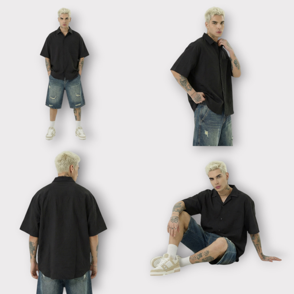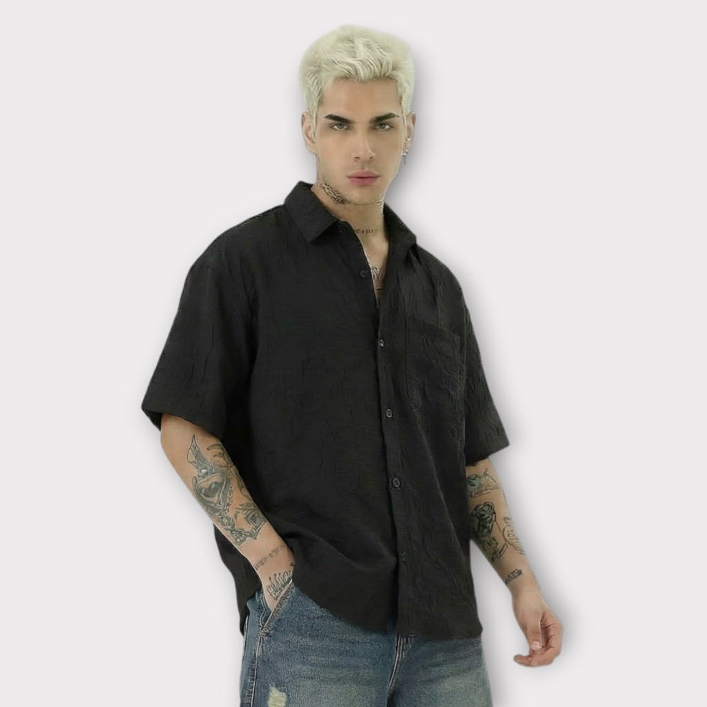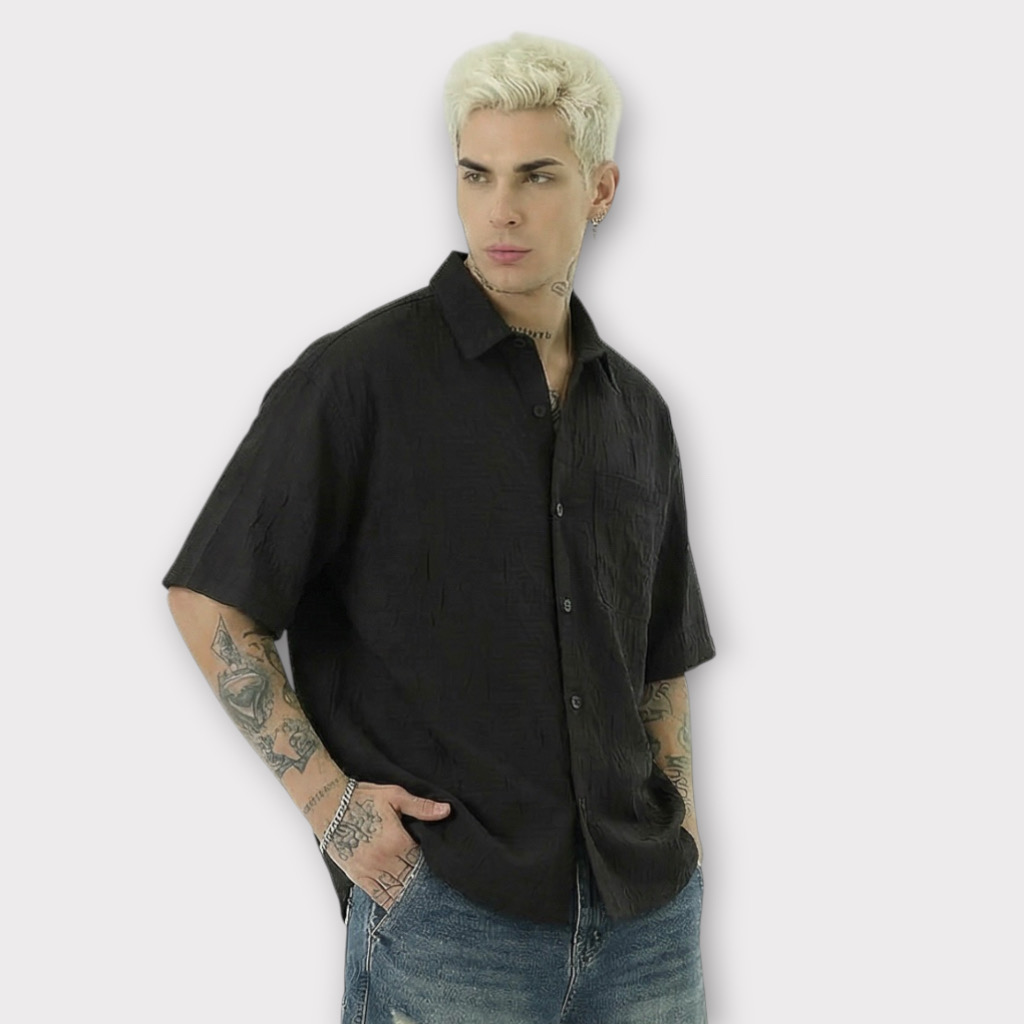 - Πουκάμισο Relax Fit Με Σχέδιο Υφάσματος Μαύρο