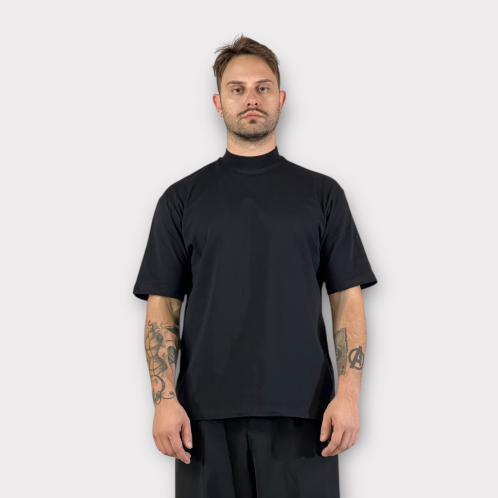 T-shirt Comfort fit Μαύρο Με Ψηλό Λαιμό