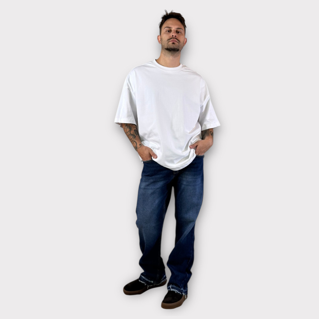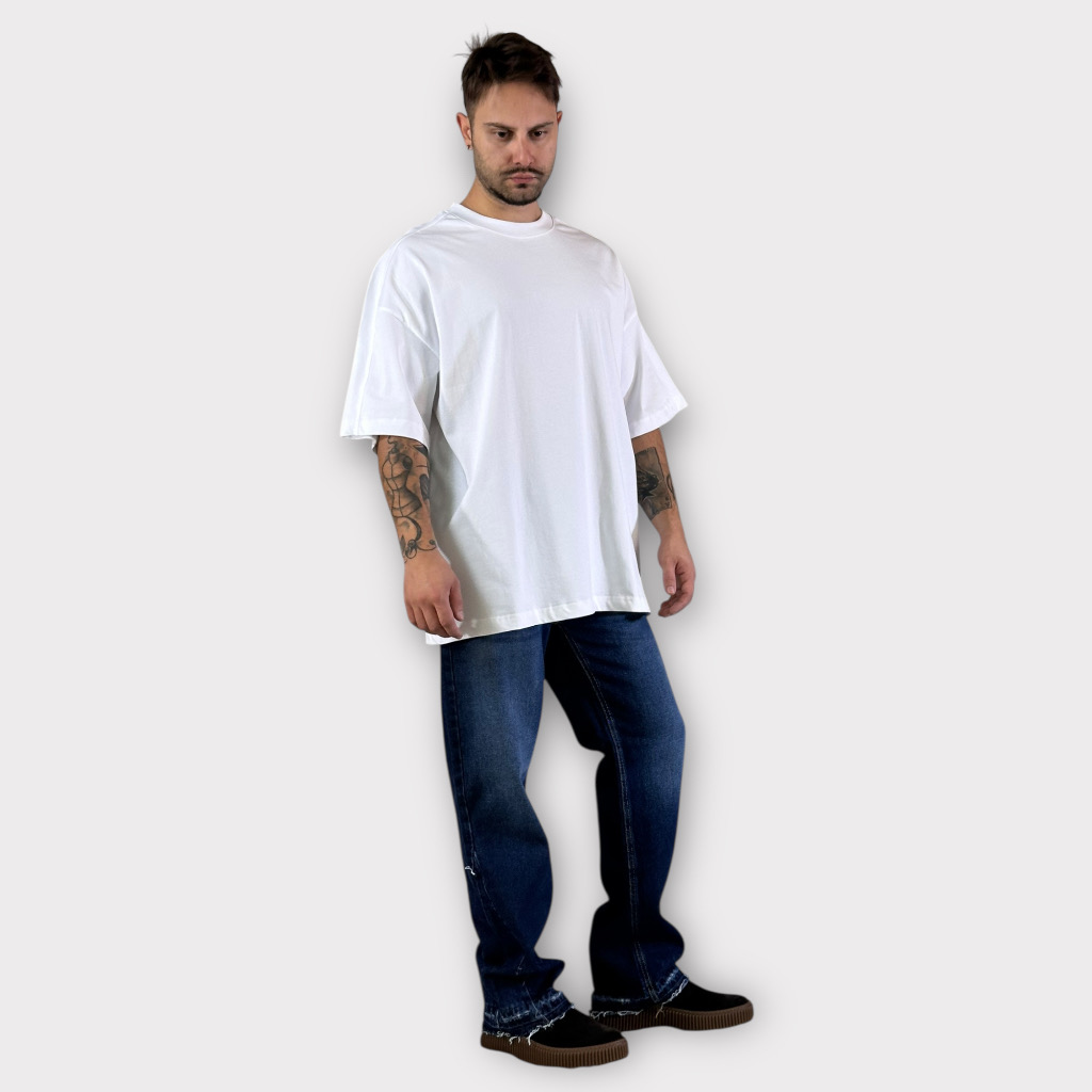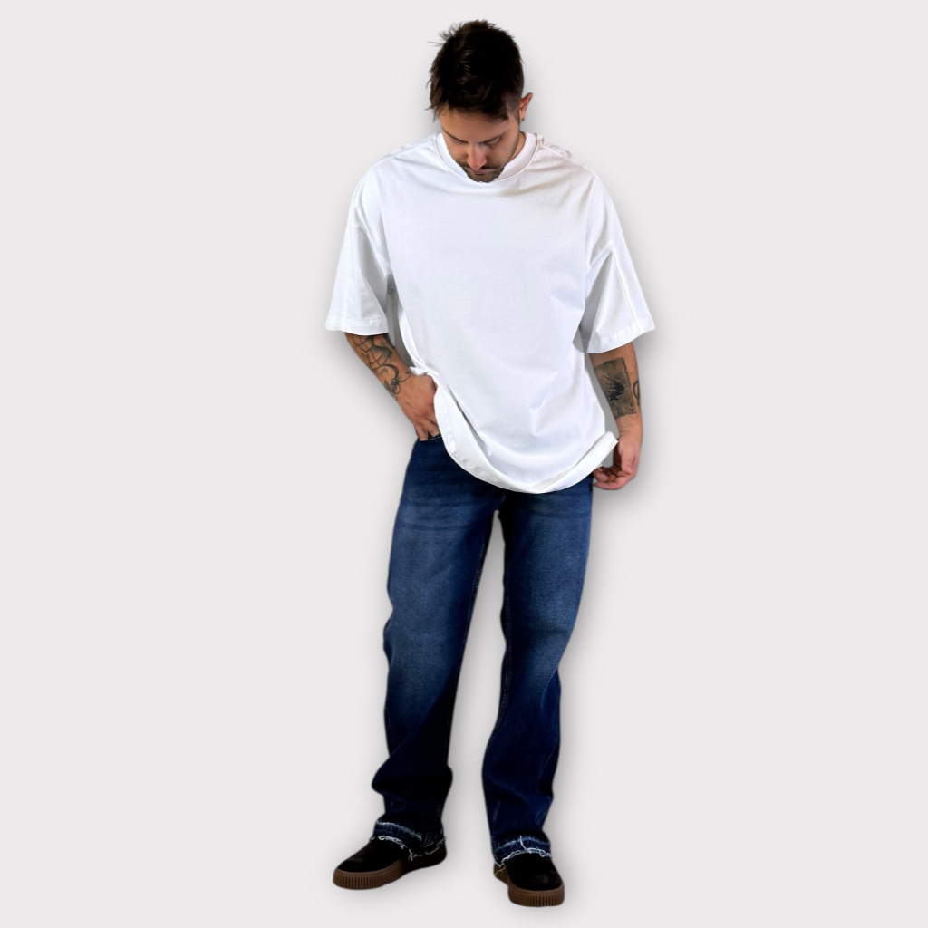 - T-shirt Oversized Με Ραφή Πισω Λευκο